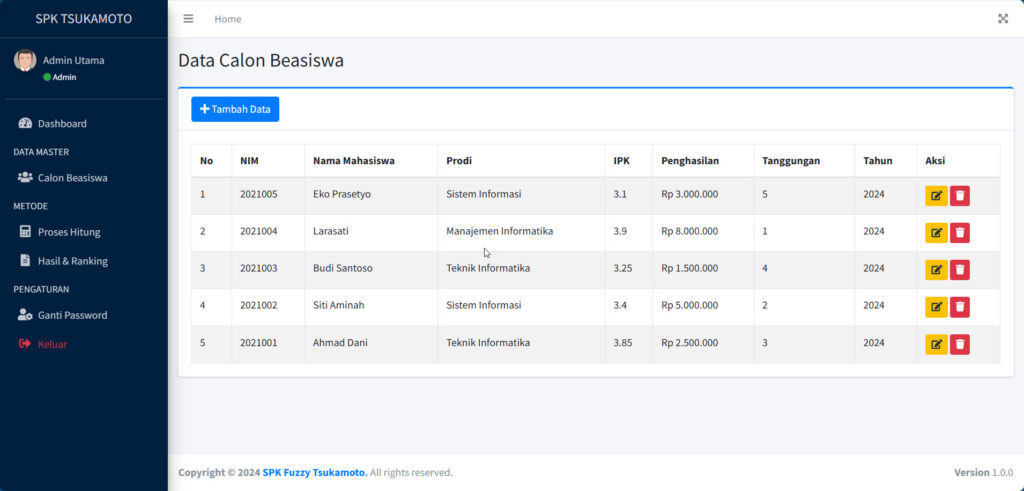 - Nama Aplikasi: Sistem Pendukung Keputusan (SPK) Seleksi Penerimaan Beasiswa