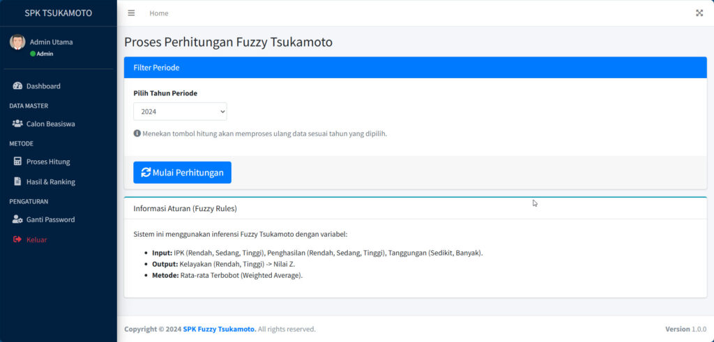 - Perhitungan Otomatis: Proses algoritma fuzzy sekali klik sesuai periode tahunan.
