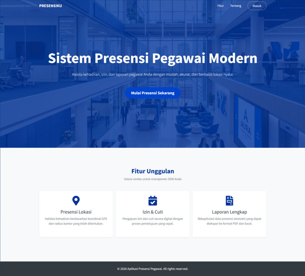 - Geofencing System: Validasi lokasi absen yang dapat diatur radiusnya oleh Admin (Anti-Chat Mock Location).